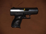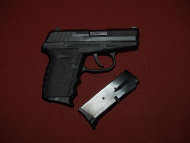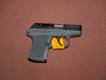 Nice Lime (Zombie) Green and Silver SCCY CPX-2 auto pistol. No manual safety for quick action. Two 10-round magazines, lock, and extra mag. floorplates.