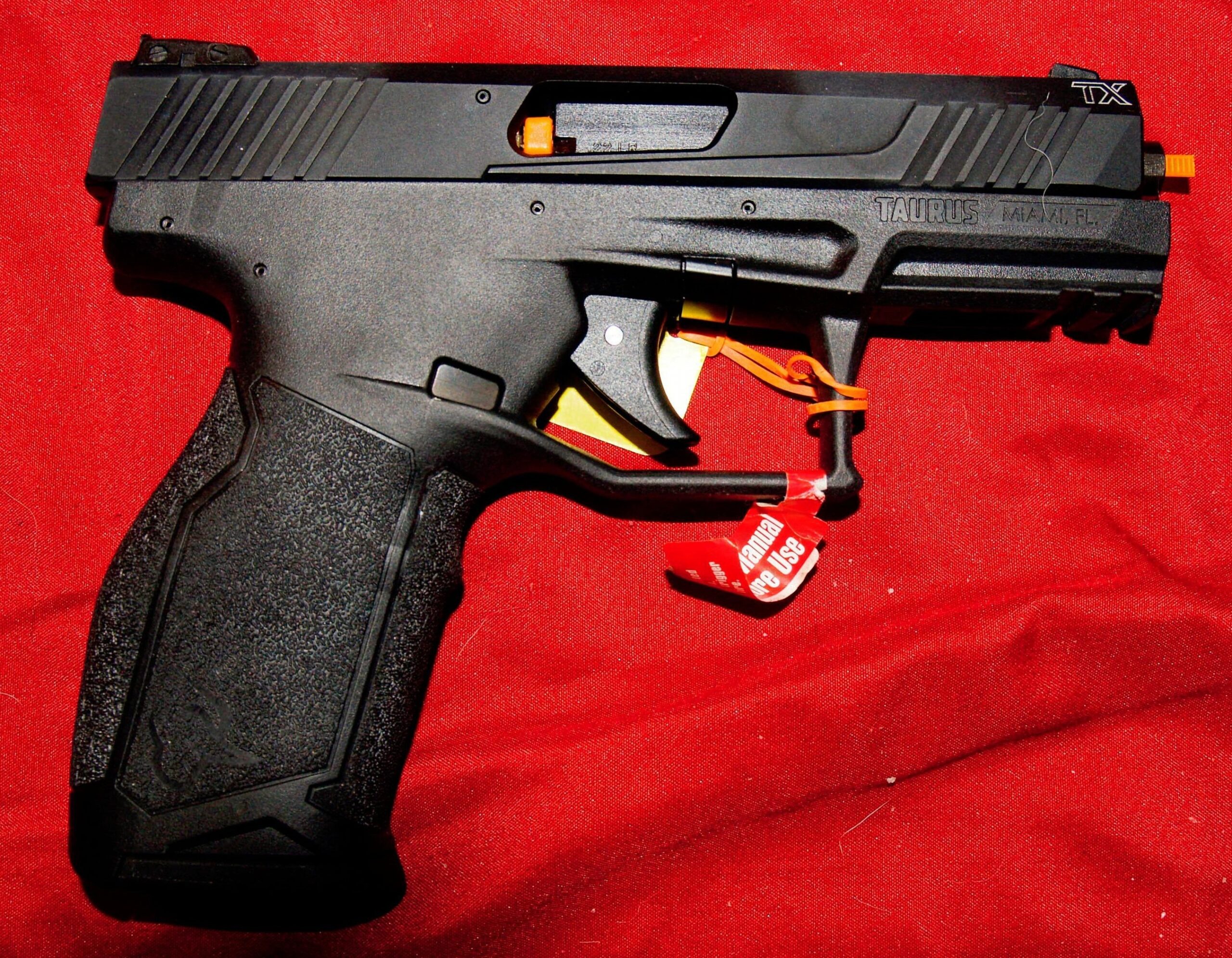Taurus TX-22 pistol in .22 LR caliber. Barrel is "suppressor ready." Super lightweight for great target or plinking fun!
